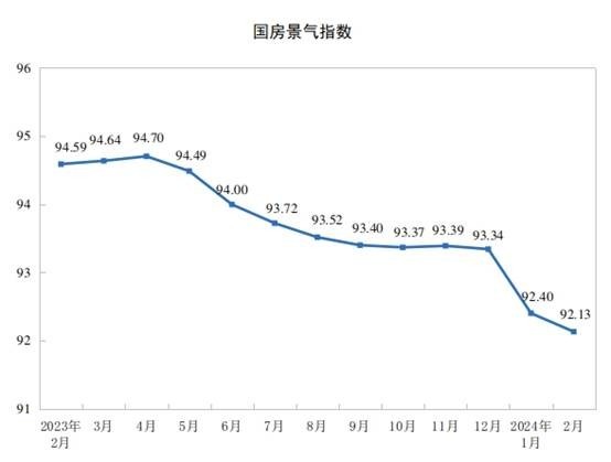 2月份,房地產(chǎn)開發(fā)景氣指數(shù)(簡稱“國房景氣指數(shù)”)為92.13。