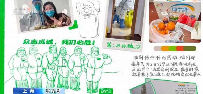畫面里的橘子是她出艙時(shí)醫(yī)護(hù)人員送給她的臨別禮物。在上海市徐匯區(qū)漕寶路方艙醫(yī)院治療了9天以后,張譯丹順利出院。
