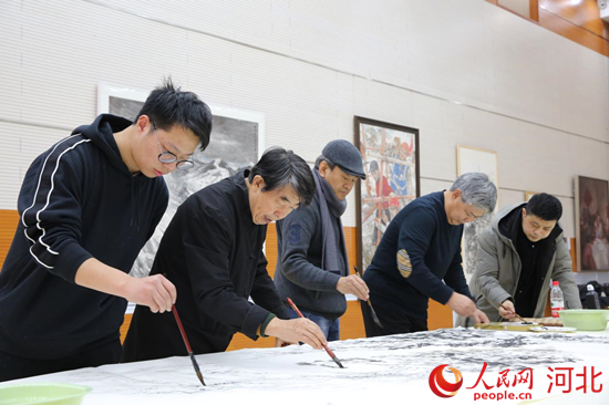 活動(dòng)現(xiàn)場(chǎng),藝術(shù)家們分三組分別創(chuàng)作了兩幅山水畫《銀龍飛馳逐夢(mèng)冬奧》《太行雪霽》和一幅花鳥畫《萬象和合》。同時(shí),來自北京、天津、河北、四川等省內(nèi)外畫家的冬奧題材美術(shù)作品也在現(xiàn)場(chǎng)展出。