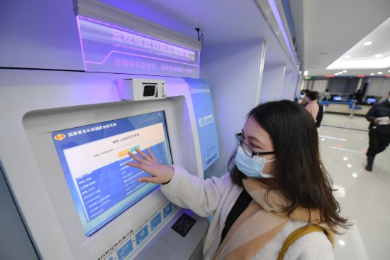 2021年1月15日,在國家稅務總局福州市臺江區(qū)稅務局辦稅服務廳,一名企業(yè)員工通過自助終端查詢納稅信用等信息。新華社記者 宋為偉 攝
