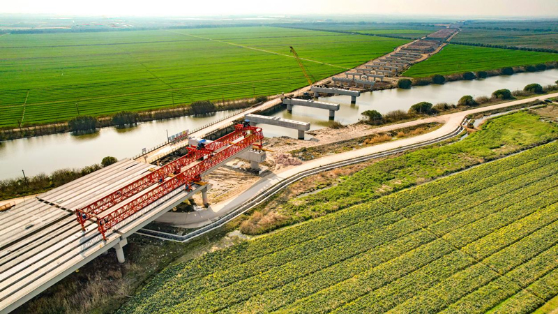 杭甬復(fù)線寧波一期項(xiàng)目濱海高架特大橋施工現(xiàn)場(chǎng)。浙交建設(shè)公司供圖
