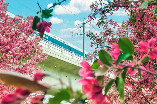 崔莊鎮(zhèn)域內高鐵沿線海棠花盛開。 馬劭文攝