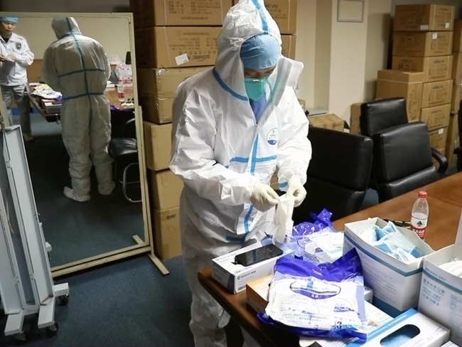 “有時候真的感覺很累,再加上穿的這些防護服也會缺氧,視線模糊。眼睛都是花的,但還是堅持吧,盡可能地調(diào)節(jié)一下自己。其實也沒什么。”醫(yī)護人員說道。