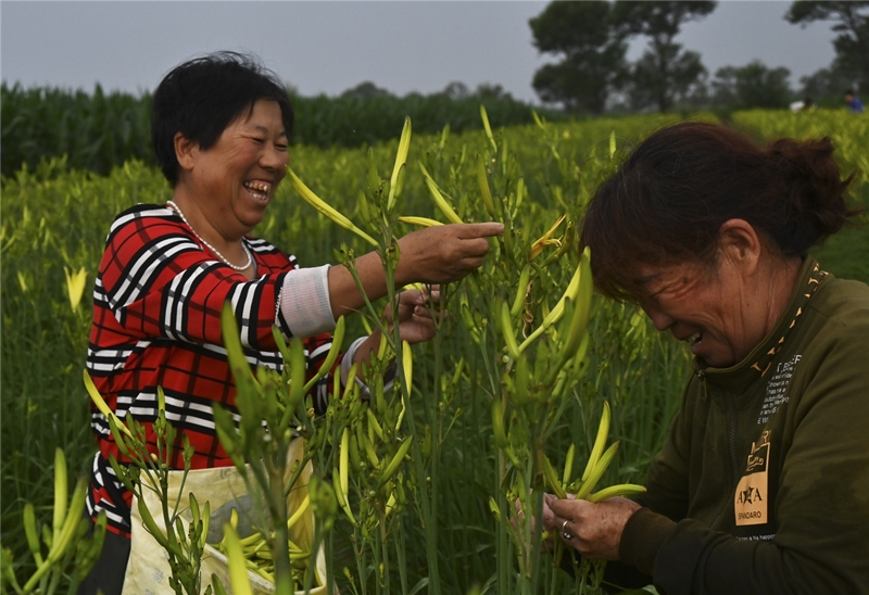 61歲的唐萬是唐家堡村第一批黃花菜種植戶。2020年,他將家中的30畝土地流轉(zhuǎn)給當(dāng)?shù)睾献魃绶N植黃花。“以前自己種地的時候,一年下來收入有時還不到2000元。沒想到,30畝黃花地改變了我們一家的生活,現(xiàn)在每年都能有3萬多元的收入,好的時候甚至更多?!闭f起黃花帶來的好生活,唐萬臉上流露出喜悅。
