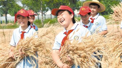 安徽省淮北市濉溪縣蒙村小學(xué)組織學(xué)生走進(jìn)麥?zhǔn)宅F(xiàn)場,讓學(xué)生在田間課堂真切地感受勞動的辛苦和糧食的寶貴。