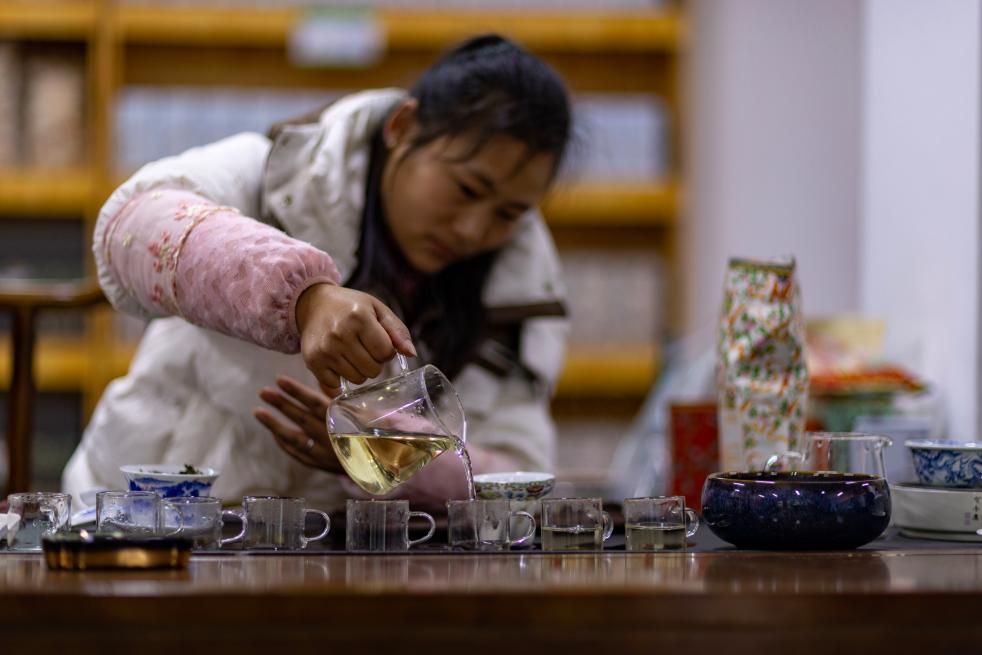 除銷售茶青之外,格林村人正在將茶產(chǎn)業(yè)不斷延伸??床?、喝茶、吃茶飯、體驗做茶,圍繞茶和茶園,在政府的支持下,格林村有了自己的品牌,村里還建起了茶葉加工廠,形成茶產(chǎn)業(yè)“一條龍”發(fā)展鏈條?!?023年茶葉廠正式運營以來,銷售額已經(jīng)超過千萬元?!蔽鞑亓种ツ撌畬毑铇I(yè)有限公司負責(zé)人陳超說。