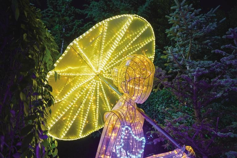 走進(jìn)燈會(huì)現(xiàn)場,仿佛置身于一個(gè)夢幻般的世界,各式各樣的花燈錯(cuò)落有致地分布在公園各個(gè)角落,令人目不暇接。宗角祿康公園的走廊里、草坪上,一盞盞精美的燈組在夜色的映襯下顯得更加璀璨奪目,展示出江南煙雨、小橋流水、青磚黛瓦、梅瓶明珠、桃花仙鶴、油傘折扇、上元燈彩等富有江蘇特色的美景雅韻,讓人似乎來到江南水鄉(xiāng),親身感受那一份寧靜與美好。當(dāng)然,此次燈會(huì)最引人矚目的便是“蘇拉一家親”大型燈組,運(yùn)用拉薩經(jīng)典配色搭建飄逸的彩帶雙翼,再搭配拉薩的吉祥物牦牛和江蘇的吉祥物麋鹿,充分表達(dá)了“蘇拉一家親,攜手向未來”的寓意。