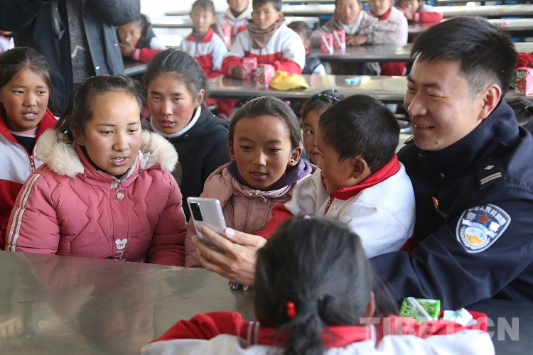 12月15日,在西藏自治區(qū)拉薩市空港新區(qū)甲日小學(xué)內(nèi),拉薩出入境邊防檢查站(以下簡稱:拉薩邊檢站)的民警和同學(xué)們一起撥通了東莞出入境邊防檢查站(以下簡稱:東莞邊檢站)的視頻電話,孩子們看到屏幕中相隔萬里的廣東東莞的叔叔阿姨們,迫不及待展示最近的學(xué)習(xí)成果。