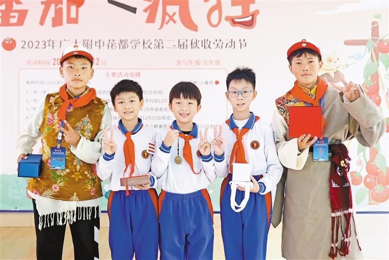 參加冬令營(yíng)活動(dòng)的少先隊(duì)員與廣大附中花都實(shí)驗(yàn)學(xué)校的新朋友互換禮物并合影。 記者 謝筱純 王珊 攝