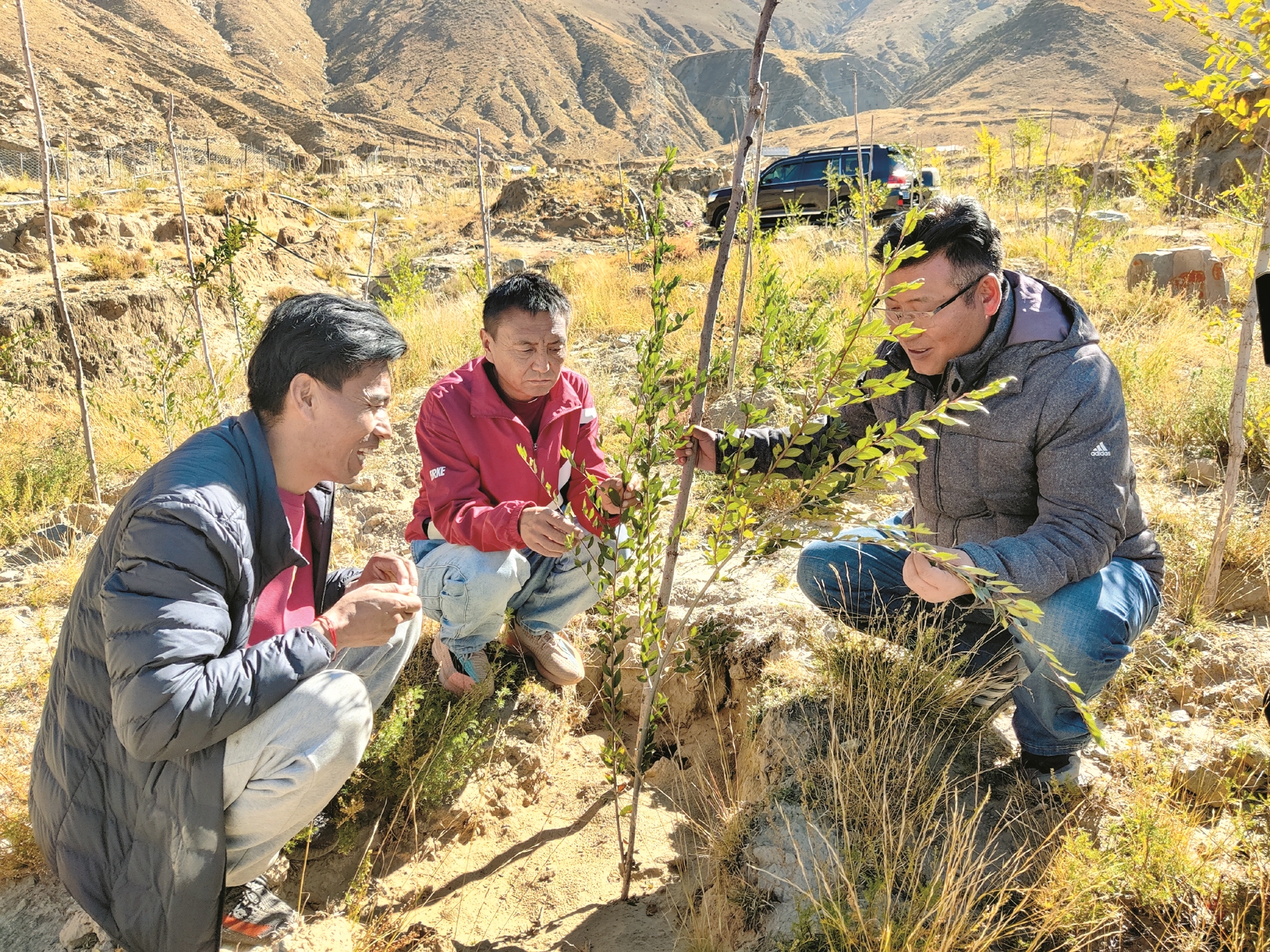 曲水縣林業(yè)和草原局工作人員米瑪次仁介紹道:“近年來,我們曲水縣總共實施人工造林2100公頃,防沙治3600公頃,‘四旁’植樹1500公頃,全民義務(wù)植樹350公頃,主要栽種的是我們當(dāng)?shù)氐募毴~紅柳、江孜沙棘、光核桃等,這些項目的實施,不僅為我們曲水縣建設(shè)生態(tài)宜居的美麗家園起到一個生態(tài)效益作用,同時為我們鞏固脫貧攻堅,為當(dāng)?shù)剞r(nóng)民群眾增收起到很好的社會效應(yīng)?!?/p>