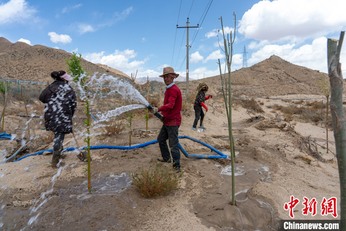 他說,雅魯藏布江兩岸的沙地多是流動沙,沙土沒有樹木生長所需的營養(yǎng),種樹前先要填生物肥、秸稈等。此外,樹苗還面臨夏季沙地溫度過高以及水源缺乏等問題?!半m然地處江邊,但種樹點離河道有五六公里甚至更遠?!泵侠麞|說,他們篩選、馴化本地植物作為種苗,澆灌水源采取就地打井的方式取水,在沙地上植樹造林。