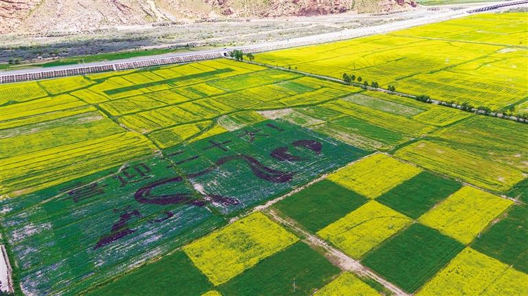 墨竹工卡縣農業(yè)農村局相關負責人告訴記者,這次的創(chuàng)意油菜花田和往年相比大不相同,為了迎接黨的二十大勝利召開,他們圈了400畝地人工種植了專門引進的四種彩色油菜花歷時兩個多月它們開花啦!看出這是什么圖案了嗎?現在記者給你揭曉(最上面是喜迎二十大字,字下中間是哈達、左邊是代表松贊干布和文成公主,右邊是愛心)。怎么樣,大家看出來了嗎?現在扎西崗村的創(chuàng)意油菜花都開了,從現在開始到接下來的半個月都是賞花期,一起去打卡墨竹工卡縣鄉(xiāng)村觀賞小油菜花的勝地吧,喜歡攝影的朋友更不能錯過哦!