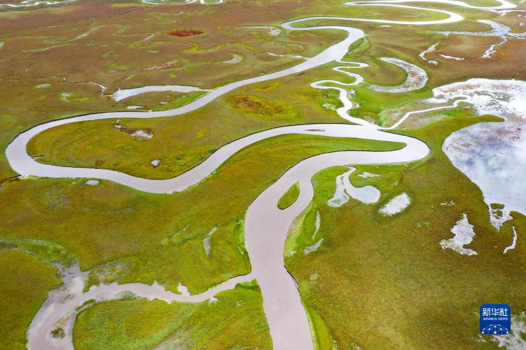 9月17日拍攝的阿萬倉濕地風光(無人機照片)。新華社記者 郎兵兵 攝