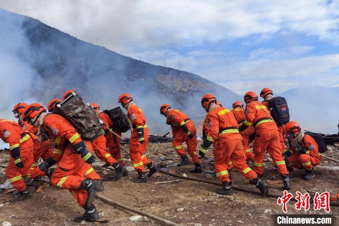 圖為林芝市2022年處置森林火災(zāi)應(yīng)急演練現(xiàn)場(chǎng)?!钣例垺z