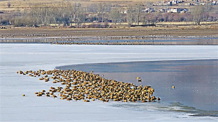 赤麻鴨“定居”青海湖 成為青海湖越冬水鳥絕對(duì)優(yōu)勢(shì)種