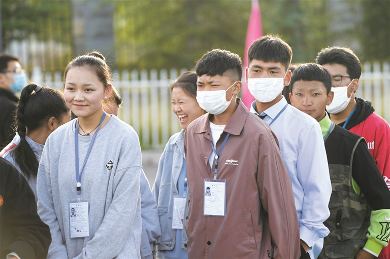 當(dāng)日上午8時(shí),考生統(tǒng)一乘坐拉薩市公交公司高考愛心接送車來到拉薩中學(xué)考點(diǎn)。在疫情防控常態(tài)化背景下,考生手拿準(zhǔn)考證、身份證,戴著口罩,排隊(duì)測量體溫之后,有序進(jìn)入考場。為應(yīng)對突發(fā)狀況,考點(diǎn)外設(shè)置了隔離區(qū),并有醫(yī)療人員駐守。參加高考的考生之間也互相加油打氣,考生拉巴頓珠說:“祝愿大家都能好好發(fā)揮,考上自己心儀的學(xué)校?!?/p>