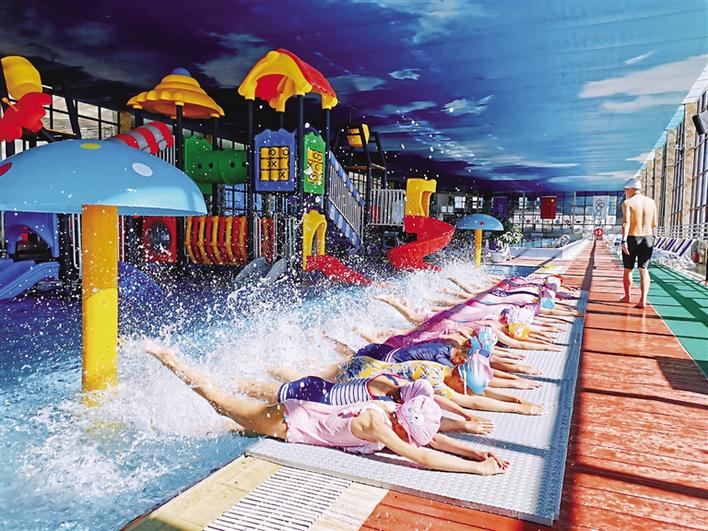 小學(xué)生在次仁珠扎的游泳館內(nèi)參加培訓(xùn)。