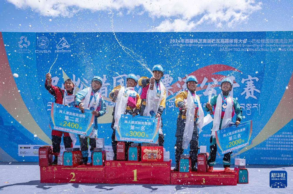 當(dāng)日,2024年巴松措國際漂流公開賽在西藏林芝市工布江達(dá)縣開賽。30余支隊(duì)伍在巴松措的湖面上展開角逐,完成兩人漂流艇競速賽和四人漂流艇排位賽的比拼。