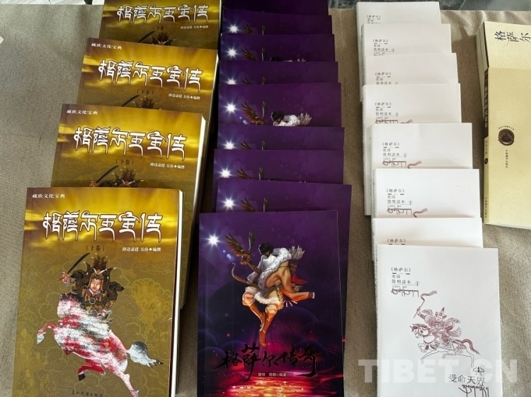 圖為展覽區(qū)內(nèi)格薩爾王相關書籍 攝影:旦曲