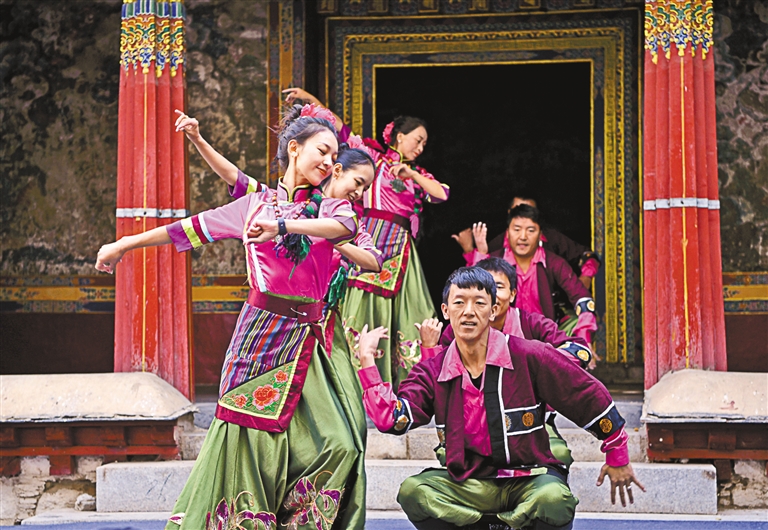 演員表演夏爾巴傳統(tǒng)舞蹈。記者 王敏 攝