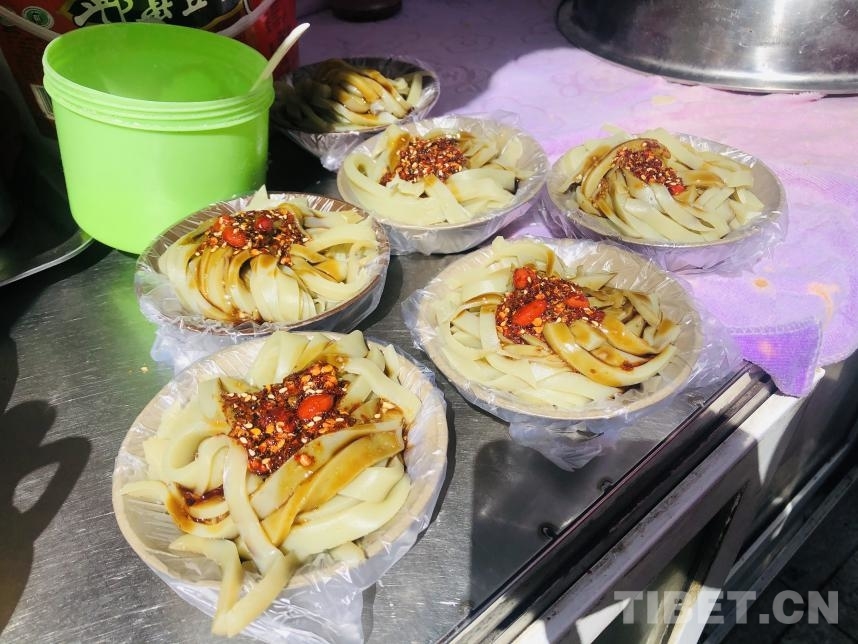中國西藏網(wǎng)訊 在四川省甘孜藏族自治州甘孜縣城的大街小巷,你可以看到這樣的小車攤位,人們在閑暇之時會圍坐在這里吃涼粉,甘孜的涼粉以豌豆淀粉制作而成,因口味純正、風味地道而深受人們的喜愛。在這暖春里,有了美味的涼粉作伴,仿佛也會變得更溫暖。