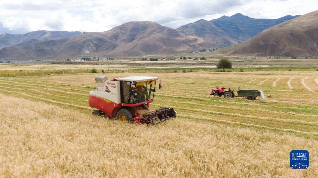 西藏拉薩市墨竹工卡縣唐加鄉(xiāng)農(nóng)民收獲青稞(8月27日攝)。新華社發(fā)(洛克攝)