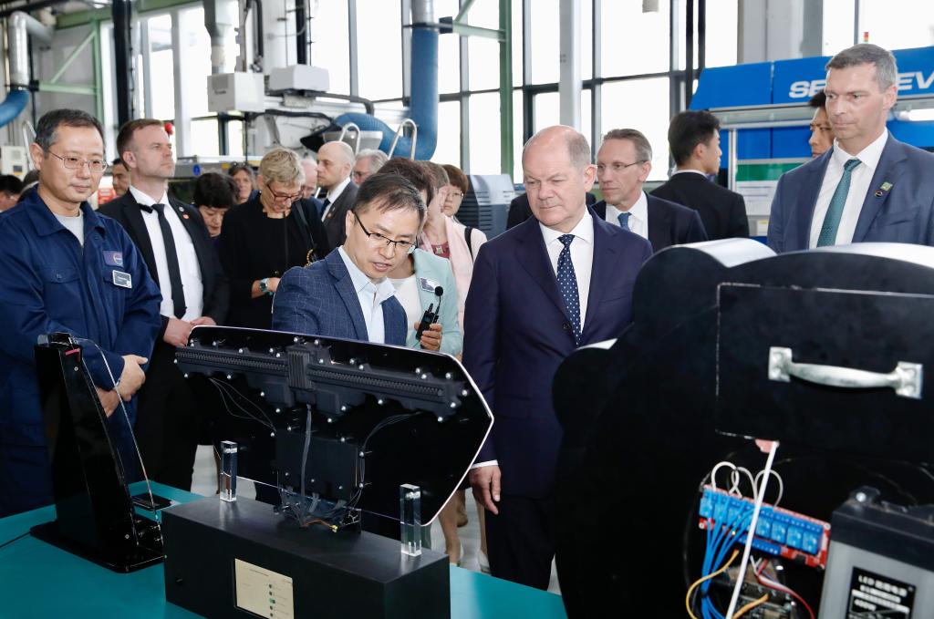 朔爾茨表示,未來30年,全球人口規(guī)??赡芡黄瓢賰|,世界各國面對諸多挑戰(zhàn),需要付出更多努力。德中合作不僅是兩個國家之間的關系,更涉及全球未來。在創(chuàng)新技術研發(fā)、氣候變化、可再生能源開發(fā)、貿易與投資等領域,德中需要進一步拓展合作。