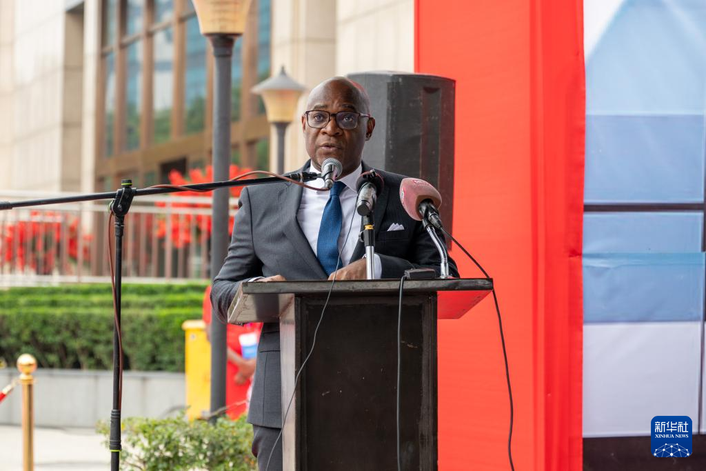 7月11日,剛果(布)財(cái)政、預(yù)算和國(guó)庫(kù)部長(zhǎng)克里斯蒂安·約卡在布拉柴維爾舉行的中剛非洲銀行開(kāi)業(yè)十周年慶祝活動(dòng)上致辭。新華社記者 鄭揚(yáng)子 攝
