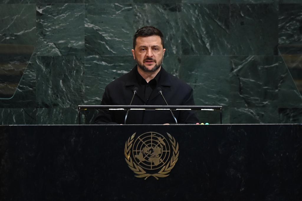 9月24日,在位于紐約的聯(lián)合國(guó)總部,烏克蘭總統(tǒng)澤連斯基在第80屆聯(lián)合國(guó)大會(huì)一般性辯論上發(fā)言。新華社記者李睿攝