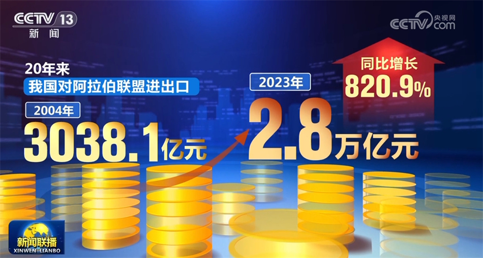 5月30日是中國—阿拉伯國家合作論壇成立20周年。據(jù)海關(guān)統(tǒng)計(jì),20年來,我國對阿拉伯聯(lián)盟進(jìn)出口由2004年的3038.1億元增長至2023年的2.8萬億元,同比增長820.9%。