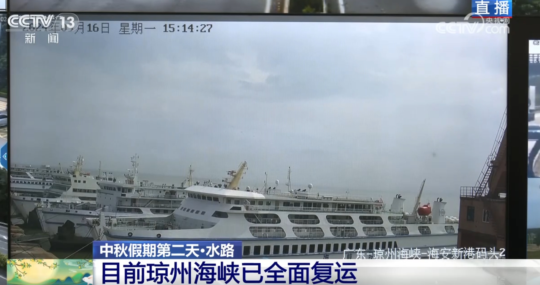 接下來看到的是瓊州海峽??谛潞8劭蜐L運輸裝載現(xiàn)場的畫面,目前車輛和人員正在有序排隊上船。臺風“摩羯”過后,在海事、客滾運輸企業(yè)等多方共同努力下,目前瓊州海峽客滾運輸航線已全面復運,運力充足。海南海事部門已開啟客滾船專項安檢活動,并且強化船舶現(xiàn)場監(jiān)督檢查,防范船舶“帶病”營運,全力保障中秋假期重點時段瓊州海峽水上安全形勢平穩(wěn)。