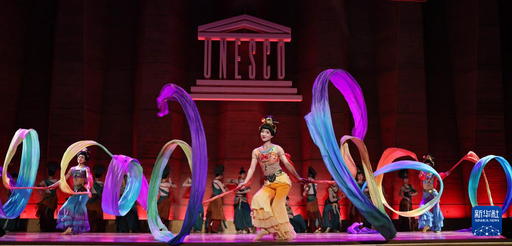 9月24日,在位于法國巴黎的聯(lián)合國教科文組織總部,中國殘疾人藝術(shù)團(tuán)的演員在國慶75周年招待會上表演。新華社記者 高靜 攝