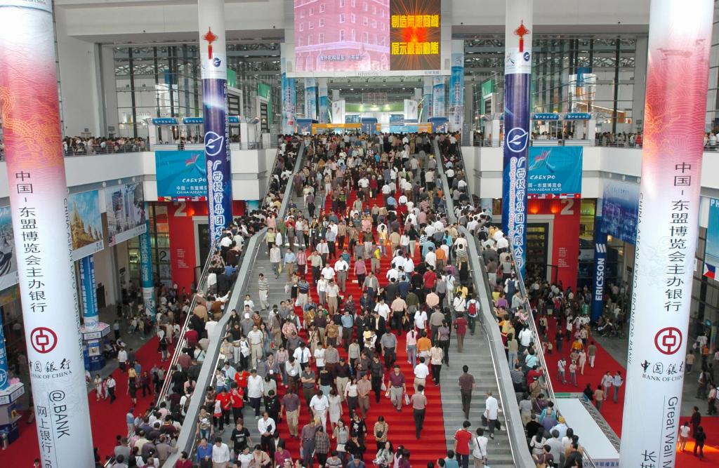 2004年11月6日,在廣西南寧舉行的首屆中國(guó)-東盟博覽會(huì)展廳內(nèi)觀者如潮。新華社記者 劉廣銘 攝
