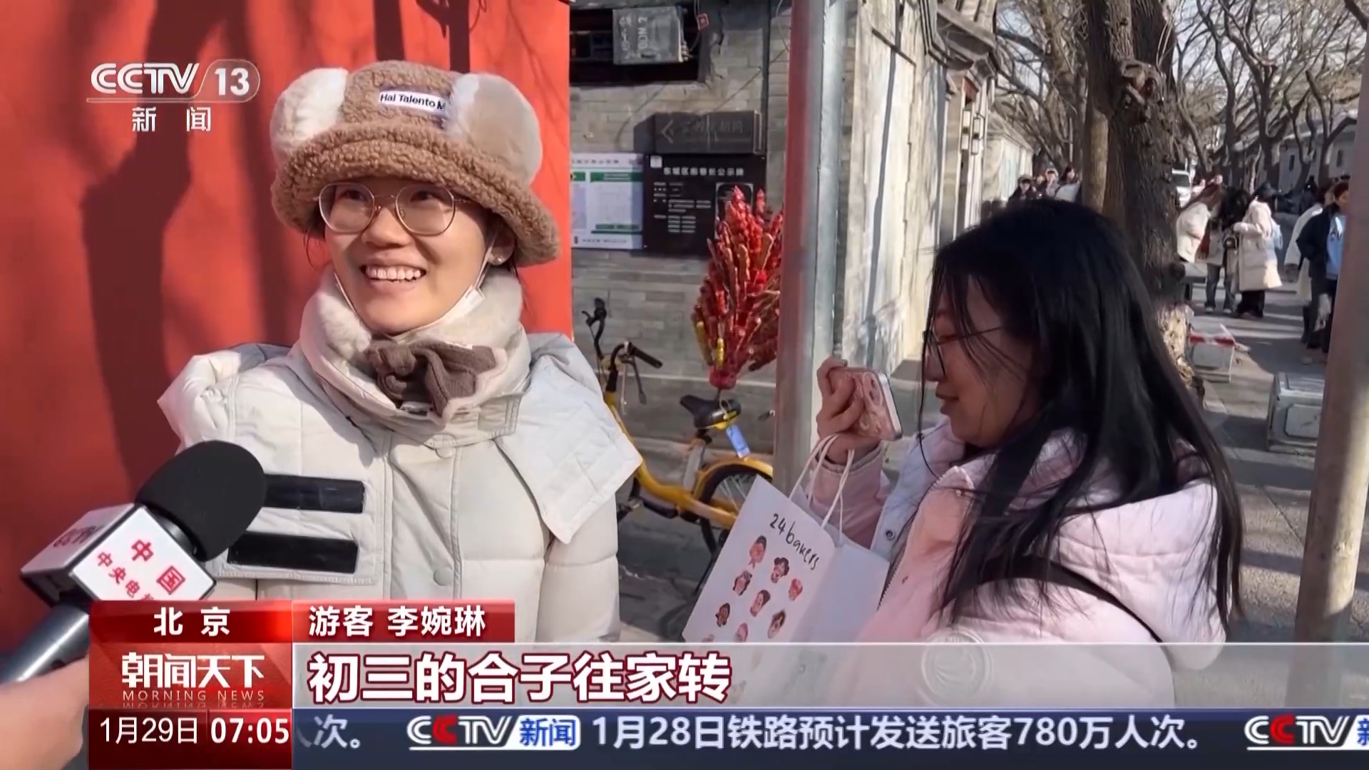 北京游客 李婉琳:北方就是都會(huì)有“貼吊錢(qián)”的文化。初一的餃子,初二的面,初三的合子往家轉(zhuǎn)。