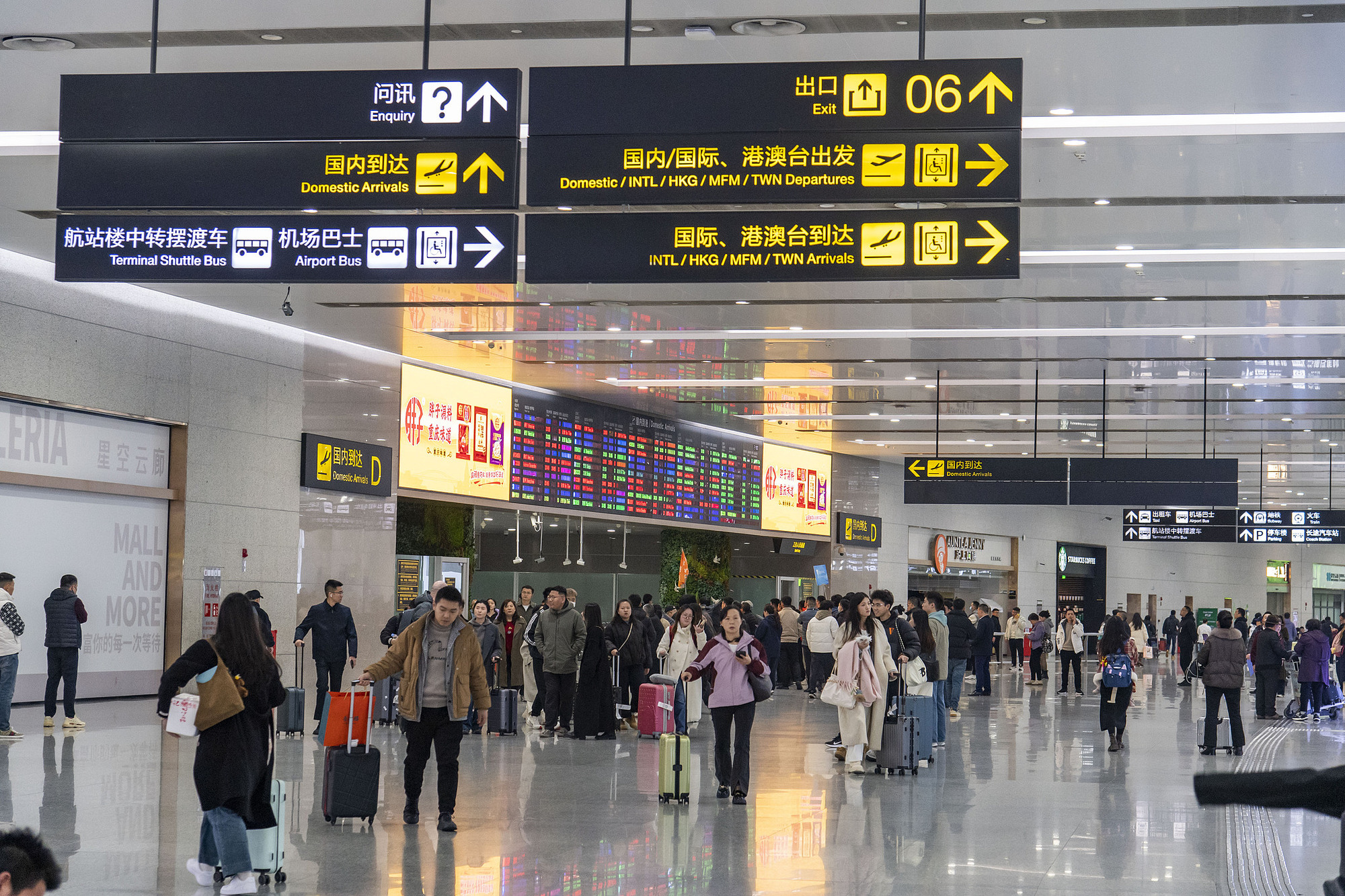 2025年2月16日,重慶江北國際機場,乘客人來人往。