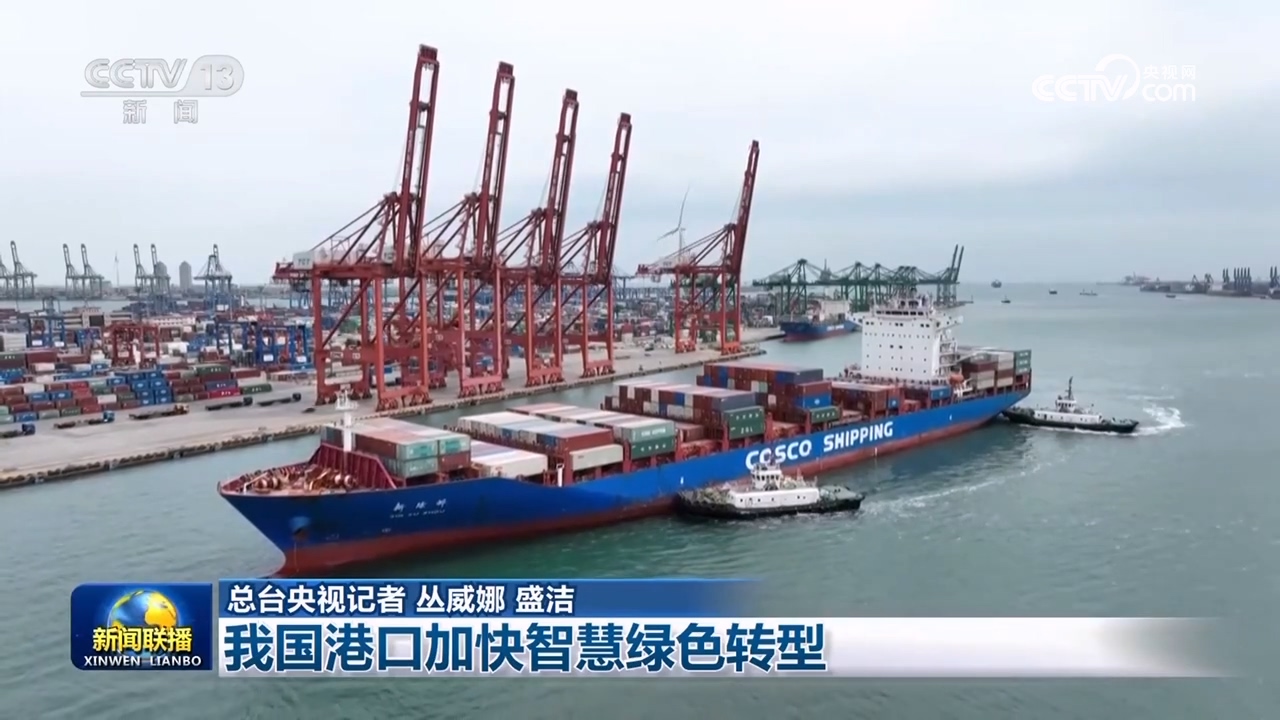 交通運(yùn)輸部數(shù)據(jù)顯示,今年1—4月,我國港口完成集裝箱吞吐量1.1億標(biāo)箱,同比增長(zhǎng)7.9%。貨物運(yùn)輸高效流轉(zhuǎn),綠色低碳設(shè)施設(shè)備也在推動(dòng)港口可持續(xù)發(fā)展。在天津港,這艘集裝箱船剛剛靠泊,岸電系統(tǒng)就開始為船舶供電,大大降低了靠港期間的污染物排放。