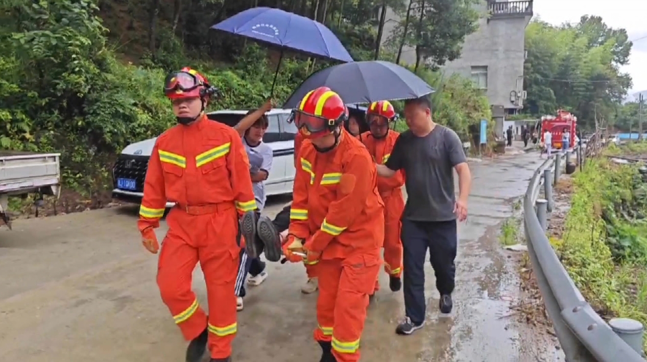 在臺州黃巖嶼頭鄉(xiāng),轉移小組在排查中發(fā)現(xiàn)上鳳村一處地質災害隱患點居住著一位92歲老人,大家立即取來擔架將老人慢慢抬出。在大家冒雨接力下,老人被護送至安置點。