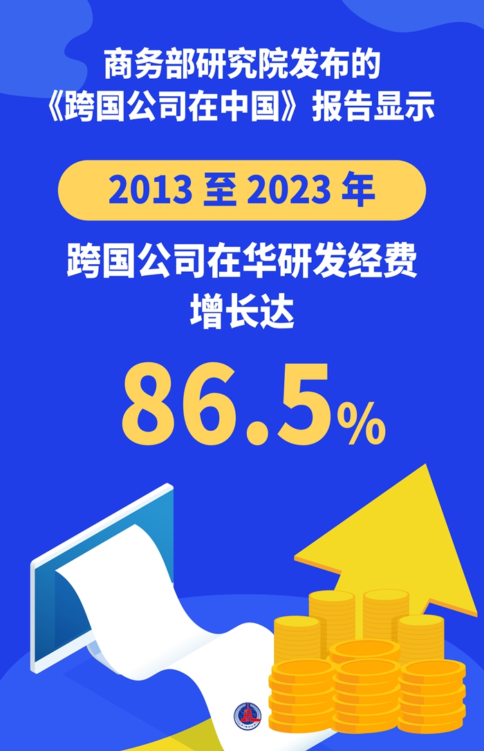 商務(wù)部研究院發(fā)布的《跨國(guó)公司在中國(guó)》報(bào)告顯示,2013至2023年,跨國(guó)公司在華研發(fā)經(jīng)費(fèi)增長(zhǎng)達(dá)86.5%??鐕?guó)公司與中國(guó)的投資合作已由“市場(chǎng)導(dǎo)向型”“成本導(dǎo)向型”延伸至“創(chuàng)新驅(qū)動(dòng)型”。