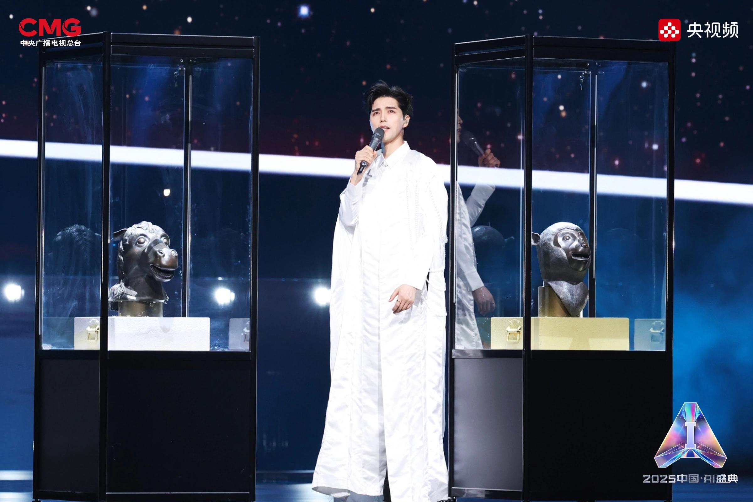 相AI相生,是藝術(shù)想象的無限延展。在AI技術(shù)的賦能下,沉睡的文物重獲新生:圓明園“十二獸首”(復(fù)制品)聚首盛典舞臺,他們化身十二樂師與歌手阿云嘎共同演繹《浮光·十二獸首歸來》,向世界展現(xiàn)東方文化藝術(shù)的魅力;《戴珍珠耳環(huán)的少女》在MiniMax海螺(Hailuo02)視頻模型的驅(qū)動下翩然起舞,與歌手Grace Kinstler隔空對唱《This Is Me》;虛擬偶像“星瞳”與歌手黃齡突破次元壁,浪漫演繹金曲《玫瑰玫瑰我愛你》;根據(jù)歌手張英席、石倚潔、蔡程昱照片生成的數(shù)字人將與“本尊”同臺獻唱,以中、英、意等語言詮釋經(jīng)典歌劇歌曲《今夜無人入眠》;AIGC技術(shù)更讓兵馬俑開啟環(huán)球之旅,在東西方文明的對話中完成文化使者的使命。