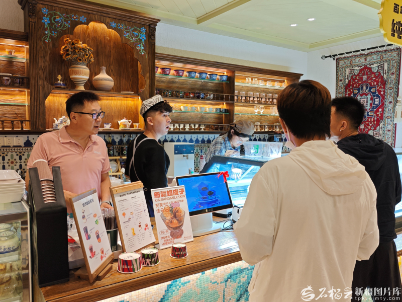 游客在冰激凌店內(nèi)選購甜品。石榴云/新疆日報記者 宋海波攝