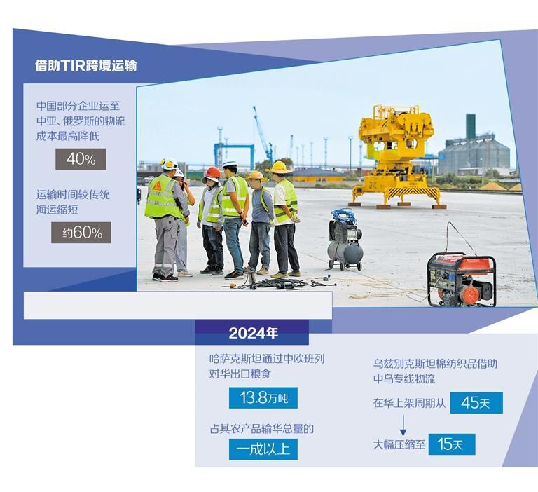 在區(qū)域產(chǎn)業(yè)鏈協(xié)同方面,TIR運(yùn)輸也為企業(yè)與成員國帶來了實(shí)實(shí)在在的收益:中國部分企業(yè)借助TIR跨境運(yùn)輸,將運(yùn)至中亞、俄羅斯的物流成本最高降低40%,運(yùn)輸時間較傳統(tǒng)海運(yùn)縮短約60%;2024年,哈薩克斯坦通過中歐班列對華出口糧食13.8萬噸,占其農(nóng)產(chǎn)品輸華總量的一成以上;烏茲別克斯坦的棉紡織品借助中烏專線物流,在華上架周期從45天大幅壓縮至15天。在產(chǎn)業(yè)鏈協(xié)同層面,汽車零部件、電子元件等中間品成了跨境電商新增長點(diǎn),標(biāo)志著區(qū)域合作正從商品貿(mào)易向產(chǎn)業(yè)鏈深度融合升級,通過降成本、提效率、拓品類,實(shí)現(xiàn)了上下游產(chǎn)業(yè)鏈的互利共贏。
