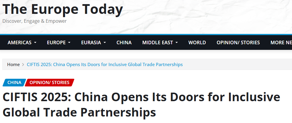 今日歐洲網站(The Europe Today)13日的報道指出,服貿會展示了中國對包容、開放和前瞻性的服務貿易的承諾。中國持續(xù)擴大市場準入,為全球企業(yè)創(chuàng)造廣闊機遇。