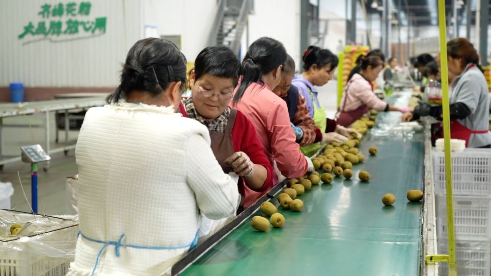 在國家級(眉縣)獼猴桃產(chǎn)業(yè)園區(qū),工人們在車間正忙著清洗、包裝剛采摘下來的獼猴桃,經(jīng)過檢驗后的獼猴桃將被運往世界各地。
