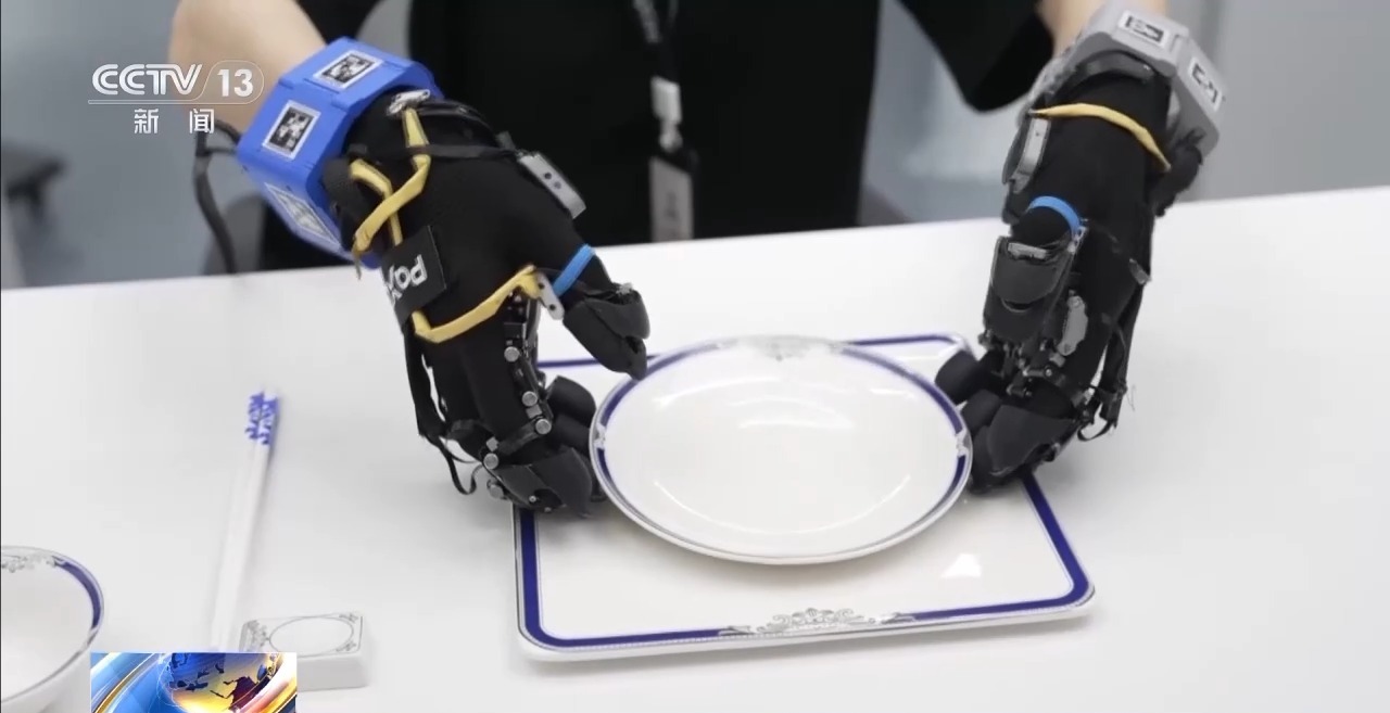 就像大語言模型依賴大規(guī)模文本語料,機(jī)器人要從“會(huì)想”邁向“會(huì)做”,同樣離不開海量真實(shí)世界的經(jīng)驗(yàn)數(shù)據(jù)做訓(xùn)練。能實(shí)時(shí)記錄觸覺、力覺和動(dòng)作細(xì)節(jié)的特制“數(shù)采手套”,就是連接真實(shí)世界和數(shù)據(jù)世界的介質(zhì)。