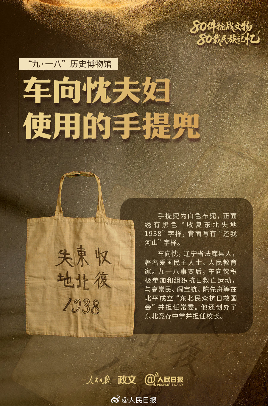 抗日志士在獄中寫下的遺書、繡有“收復(fù)東北失地 1938”“還我河山”字樣的手提兜、東北抗聯(lián)被服廠縫紉機……九一八事變爆發(fā)94周年,“80件抗戰(zhàn)文物80載民族記憶”系列報道第七期,見證白山黑水間的不屈抗?fàn)帯懹洑v史,守護(hù)永不褪色的抗戰(zhàn)記憶!