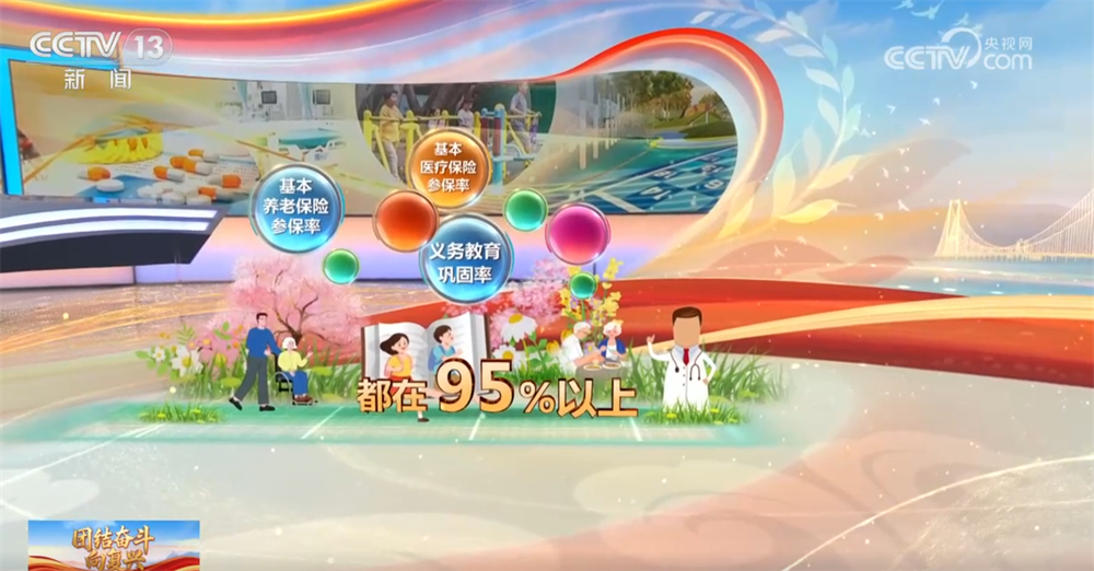 這五年,經(jīng)濟(jì)發(fā)展、科技進(jìn)步的成果實(shí)打?qū)嵉剞D(zhuǎn)化為群眾的獲得感和幸福感。我國已建成全球規(guī)模最大的教育體系、社會保障體系、醫(yī)療衛(wèi)生體系,義務(wù)教育鞏固率和基本養(yǎng)老保險(xiǎn)、基本醫(yī)療保險(xiǎn)參保率都在95%以上。