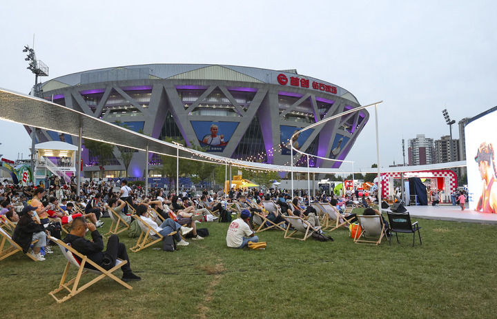 國家網(wǎng)球中心今年完成升級(jí)改造,進(jìn)一步完善訓(xùn)練區(qū)和觀賽區(qū)的設(shè)施和服務(wù),為運(yùn)動(dòng)員和球迷帶來一場(chǎng)“網(wǎng)球盛宴”。今年中網(wǎng)期間,園區(qū)西側(cè)特別設(shè)置了兩塊直播大屏,觀眾進(jìn)入園區(qū)可以在草地躺椅上觀賽,周圍配有餐飲店和官方授權(quán)商品店,讓球迷在北京秋日微風(fēng)中欣賞精彩比賽、歡度國慶假期。