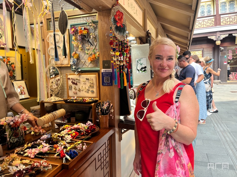 除了時尚消費的多元選擇,上海的特色消費更從“傳統(tǒng)好物”延伸至“科技潮品”,在滿足不同需求的同時,也向境外游客傳遞著中國文化的溫度與現(xiàn)代生活的便利?!拔屹I了很多中國茶葉,買了玉手串。我還買了各種絲綢制品,有漂亮的裙子、絲巾,還有一條可以和媽媽一起使用的絲綢毯子?!倍砹_斯游客艾琳娜的行李箱里,裝滿了頗具中國風(fēng)的優(yōu)質(zhì)商品,這些都是她眼中“最有中國味道的伴手禮”。