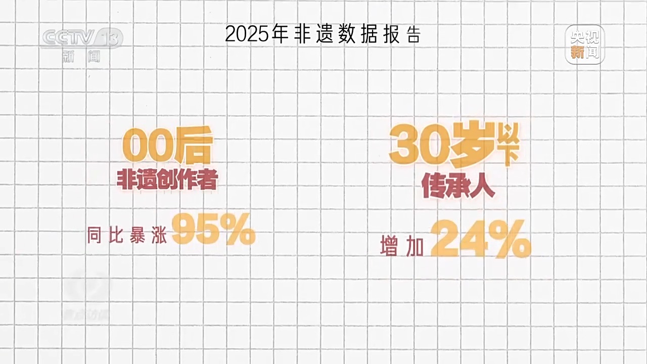 政策托底讓非遺的家底越來(lái)越厚實(shí):全國(guó)已認(rèn)定國(guó)家、省、市、縣四級(jí)非遺代表性傳承人超9萬(wàn)人,非遺代表性項(xiàng)目突破10萬(wàn)項(xiàng),一張覆蓋廣泛、銜接有序的非遺保護(hù)傳承體系日益健全。而這也帶動(dòng)相關(guān)產(chǎn)業(yè)的發(fā)展。我看到某電商平臺(tái)的數(shù)據(jù),這家平臺(tái)去年一年非遺好物線上銷量超65億單,相當(dāng)于全國(guó)平均每人下了約4.6單!這數(shù)字是不是有點(diǎn)讓人震驚!顯然,傳承非遺不再是單靠“情懷硬扛”,老手藝跟市場(chǎng)碰撞出了“經(jīng)濟(jì)火花”。有了體面的收入,年輕人自然更愿意參與到非遺傳承中來(lái)。