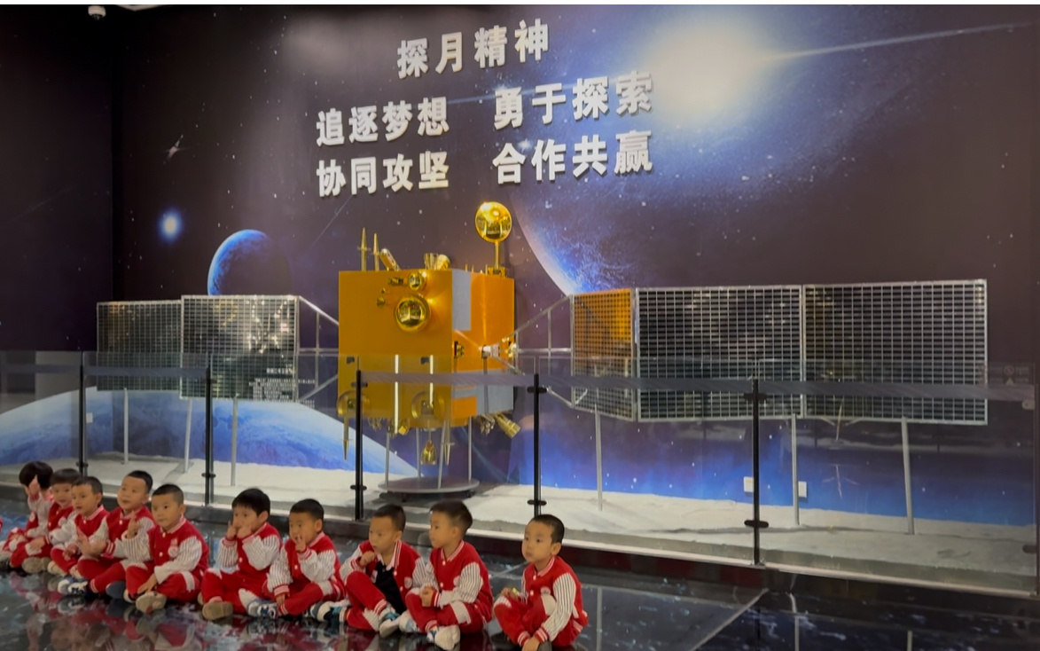 小朋友參觀航天館并合影留念(央廣網(wǎng)發(fā) 王語(yǔ)詩(shī) 攝)